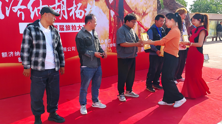 近日,额济纳胡杨林首届旅拍大赛在额济纳旗景区盛大开启。额济纳旗文化旅游广电局局长蒋菊梅、额济纳旗居延文旅发展有限公司总经理青格斯、甘肃文旅运营集团额济纳胡杨林项目运营组组长张虎、甘肃文旅新媒体科技有限公司总经理白小平等嘉宾出席活动,并为旅拍团队颁发官方授权牌。