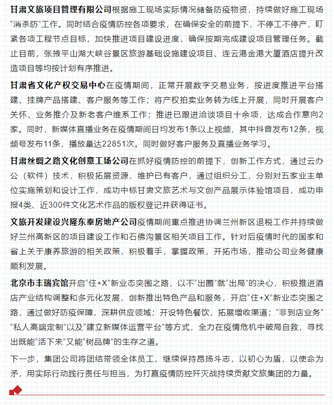 冲锋在前抗疫情 守土尽责稳经营——甘肃文旅集团抗疫工作纪实