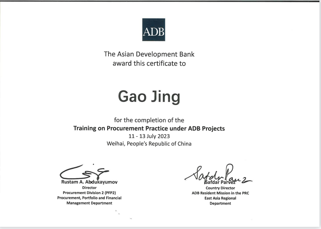 2023年8月,由亚洲开发银行(以下简称“亚行”)主办,亚行驻中国代表处承办的采购实践培训、项目财务管理培训在山东顺利举办。PA视讯国际金融组织贷款项目管理办公室三名同志作为亚行贷款甘肃环境可持续乡村振兴与发展项目代表参加了此次培训。