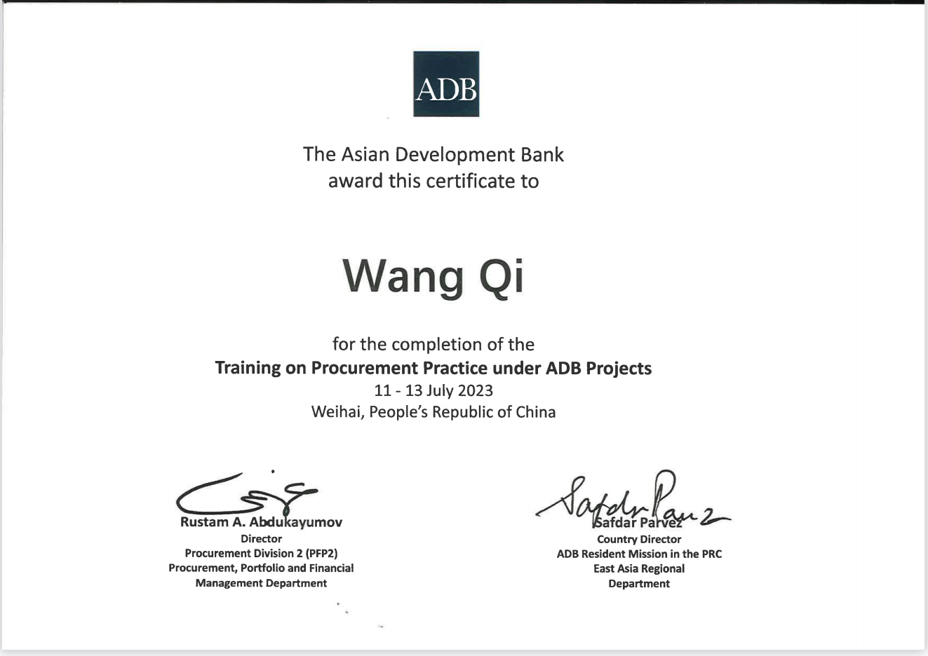 2023年8月,由亚洲开发银行(以下简称“亚行”)主办,亚行驻中国代表处承办的采购实践培训、项目财务管理培训在山东顺利举办。PA视讯国际金融组织贷款项目管理办公室三名同志作为亚行贷款甘肃环境可持续乡村振兴与发展项目代表参加了此次培训。